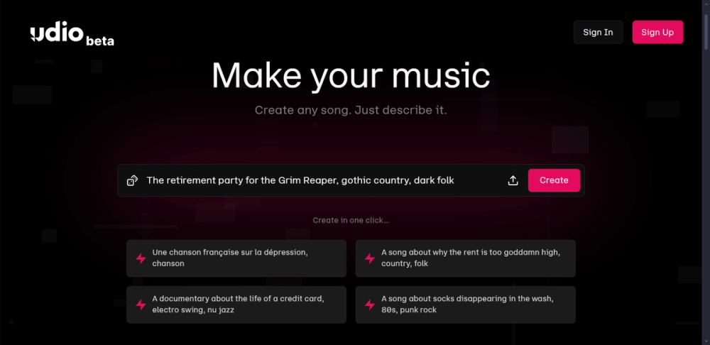Udio – модель ИИ, способная генерировать вокал и музыку на основе текстового запроса. В результате пользователь получает полноценный трек с песней.