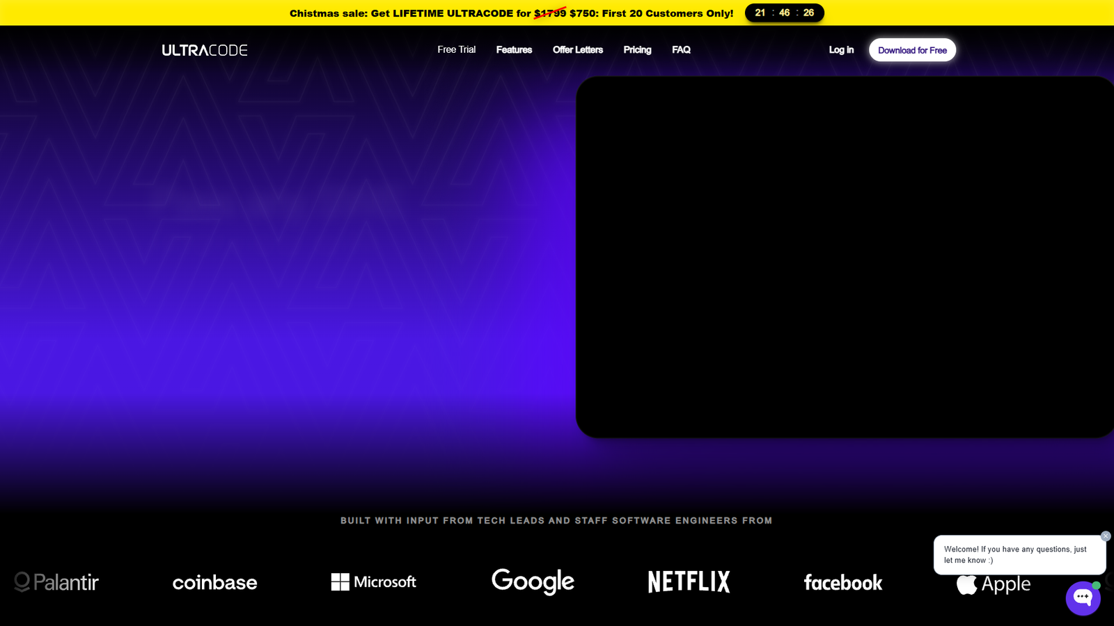 ULTRACODE AI помогает готовиться к техническим собеседованиям разработчиков, имитируя реальные сценарии интервью. Инструмент ориентирован на кандидатов на позиции Software Engineer и охватывает как алгоритмические задачи, так и системный дизайн.