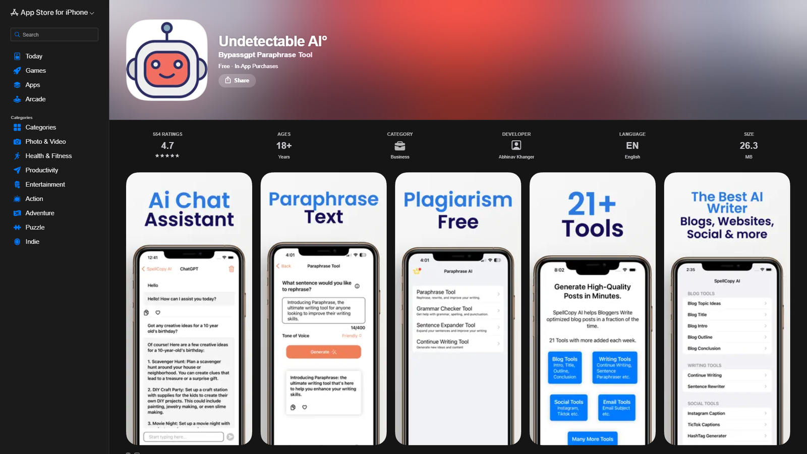Undetectable AI° доступен на iPhone и iPad, что позволяет работать с текстами где угодно. Интуитивный интерфейс и встроенные покупки открывают расширенные функции для тех, кому нужен постоянный и масштабируемый поток контента.