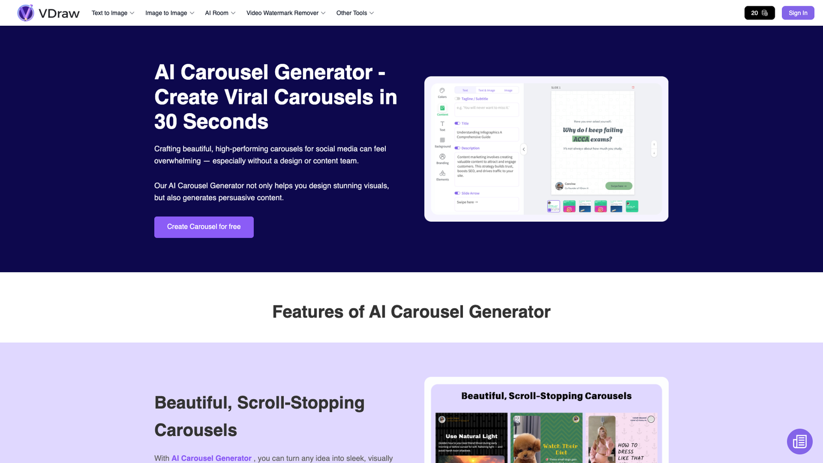 AI Carousel Generator превращает текст, видео и PDF в готовые карусели для соцсетей за считанные секунды. Инструмент берет на себя и визуальную часть, и написание убедительного контента, так что пользователю остается только выбрать формат и опубликовать результат.