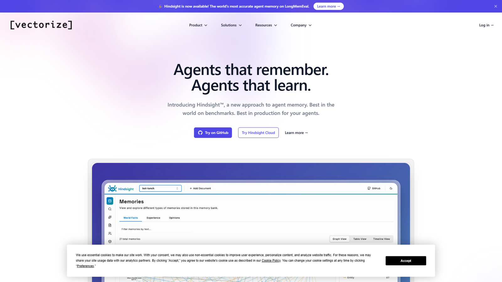 Ключевой продукт Vectorize — Hindsight, модуль памяти для AI-агентов. Он фиксирует контекст взаимодействий, извлекает важные факты и возвращает их в нужный момент. За счёт этого агенты лучше «помнят» пользователей, прошлые задачи и принятые решения.