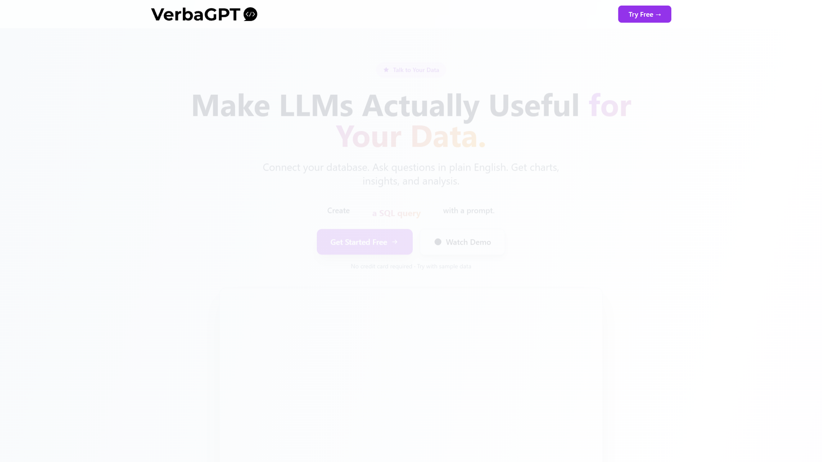 VerbaGPT — это платформа, которая делает большие языковые модели по‑настоящему полезными для работы с вашими данными. Сервис подключается к базам данных и рабочим процессам, чтобы превращать запросы на естественном языке в анализ, графики и модели на Python — без необходимости писать SQL.