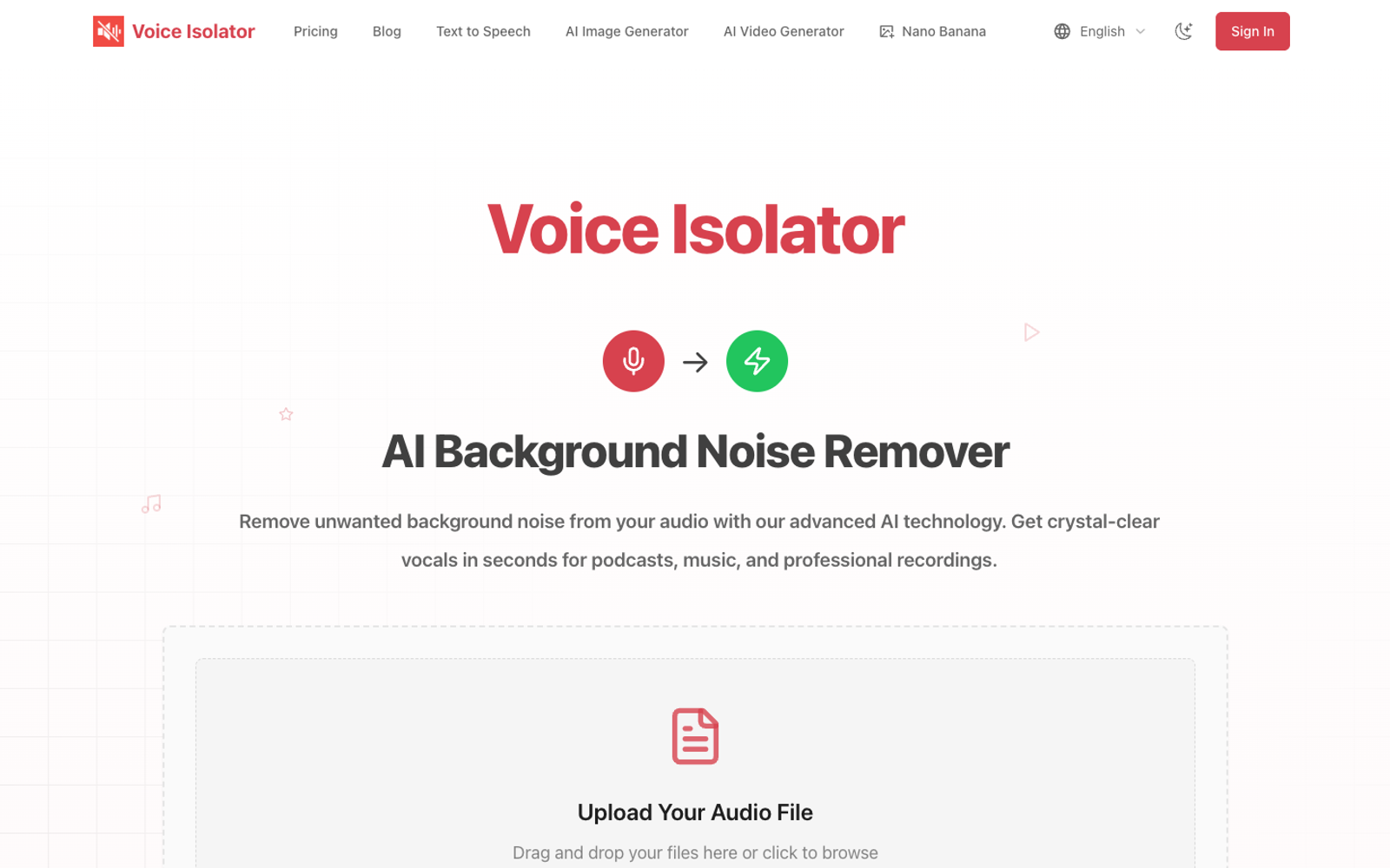 Voice Isolator — онлайн-инструмент для очистки голоса от фонового шума с помощью ИИ. Подходит для подкастеров, музыкантов, дикторов и всех, кто записывает голос в неидеальных условиях.