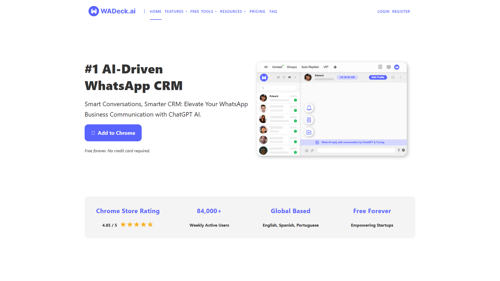 Инструмент ориентирован на стартапы и компании, которые растут за счёт WhatsApp-коммуникаций. Поддерживаются несколько языков, есть расширение для Chrome и базовый функционал доступен бесплатно, что снижает порог входа для небольших команд.
