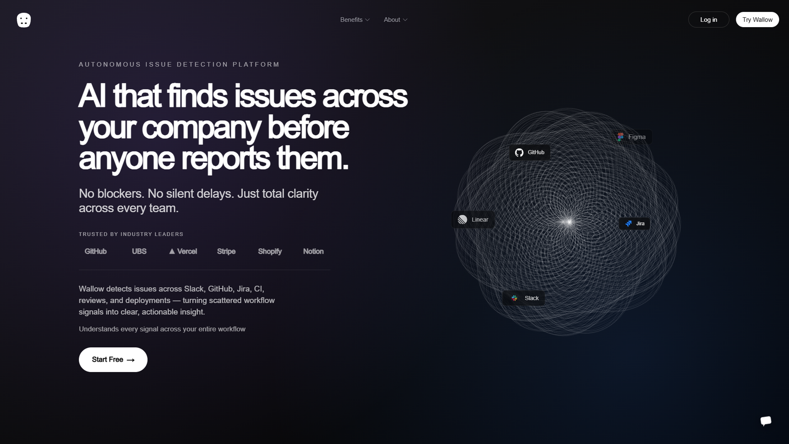 Wallow — это автономная AI-платформа для обнаружения блокеров и проблем в рабочих процессах до того, как о них кто‑либо успеет сообщить. Сервис анализирует сигналы из Jira, Slack, GitHub, Linear, CI, деплойментов и других инструментов, превращая разрозненные данные в понятные, приоритетные инсайты для команд.