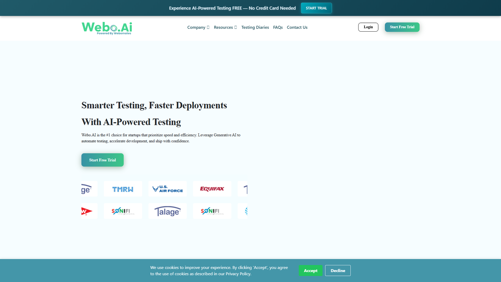 Webo.AI позиционируется как решение, которое сокращает время тестирования до 80%, снижает дефекты в продакшене и уменьшает расходы на QA. Можно начать с бесплатного пробного периода без привязки карты, чтобы оценить эффект на своём проекте.