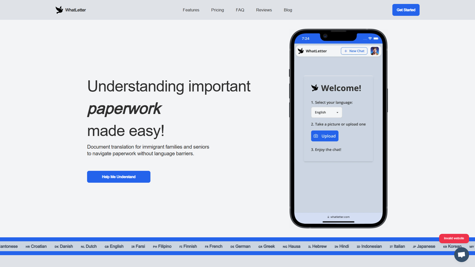 WhatLetter — это AI-сервис, который помогает быстро понимать важные документы на любом языке. Достаточно сделать снимок письма, счета, формы или меню, и система распознает текст, переведёт его и объяснит содержание простым, понятным языком.