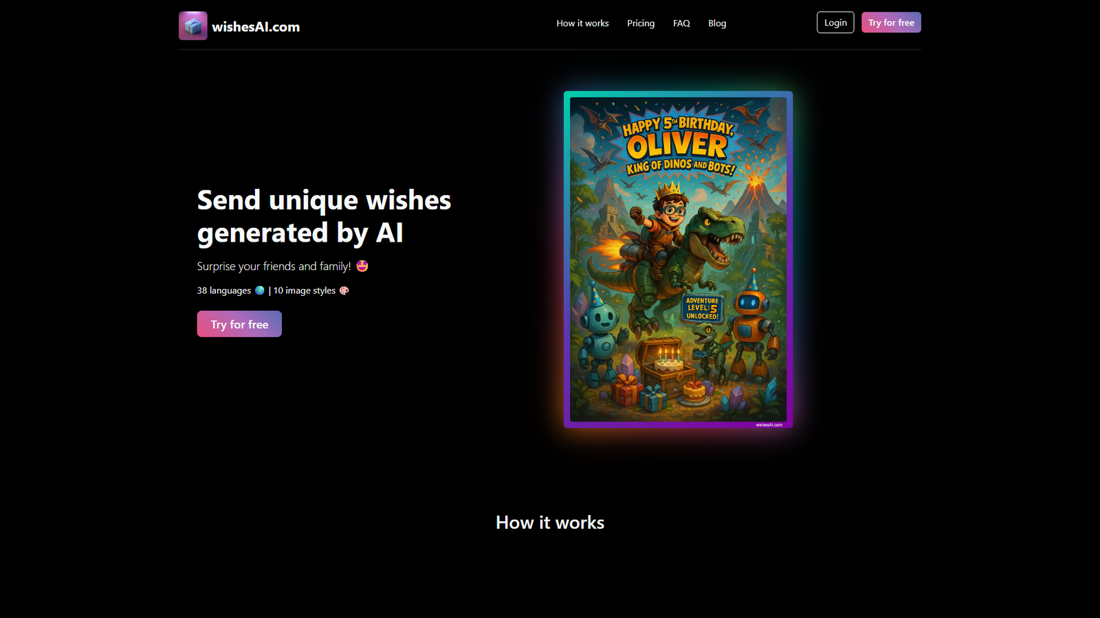 Wishes AI — это онлайн‑сервис, который за минуту создает уникальные поздравления с помощью искусственного интеллекта. Вам больше не нужно долго думать над текстом открытки или поздравительного сообщения — достаточно описать человека и повод, а остальное платформа сделает сама.