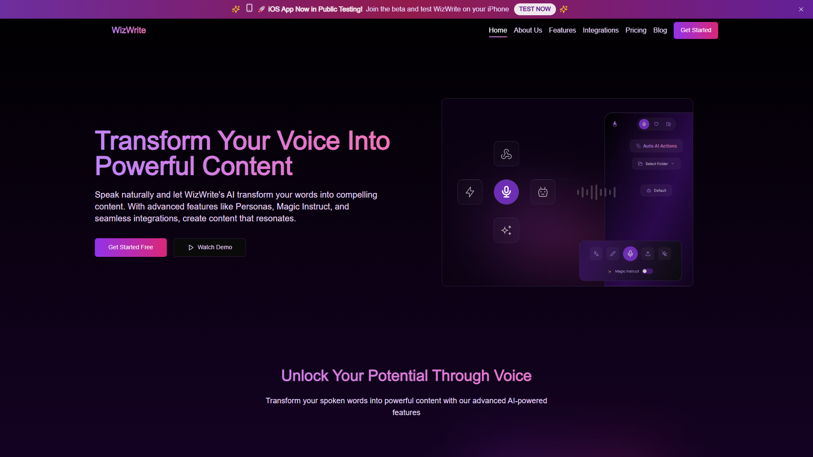 WizWrite — это AI-сервис, который превращает вашу речь в готовый контент: статьи, посты, заметки и другие тексты. Просто говорите естественно, а платформа автоматически транскрибирует ваши слова и помогает превратить черновые идеи в структурированный, читаемый материал.