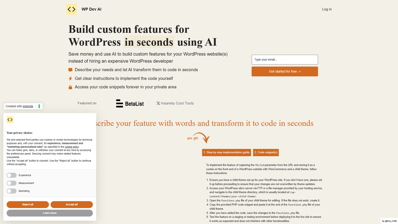 WP Dev AI подходит для быстрых экспериментов с функционалом сайта: можно проверять гипотезы, добавлять небольшие улучшения и правки без долгих брифов и ожидания релизов. Инструмент особенно полезен тем, кто развивает несколько WordPress-проектов и регулярно нуждается в точечных доработках.