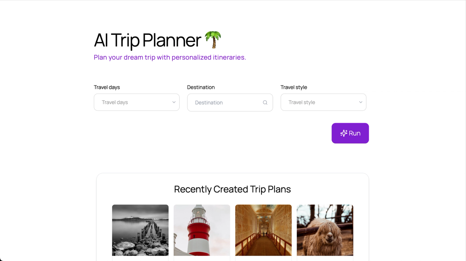 AI Trip Planner is an AI-powered itinerary generator that helps you plan trips faster by turning your preferences and budget into a ready-to-use travel plan.