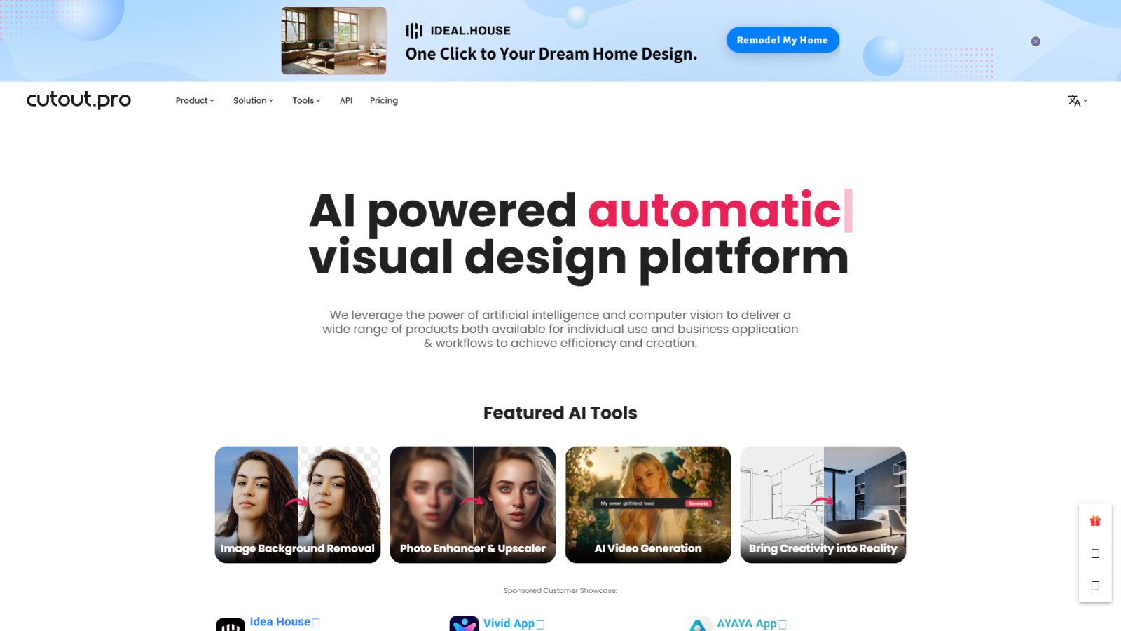 Cutout Pro is a web-based AI platform for editing images and video. It automates common tasks like background removal, quality enhancement, and image upscaling. Upload a file, choose a tool, and get results in seconds—no design experience or software installation required.