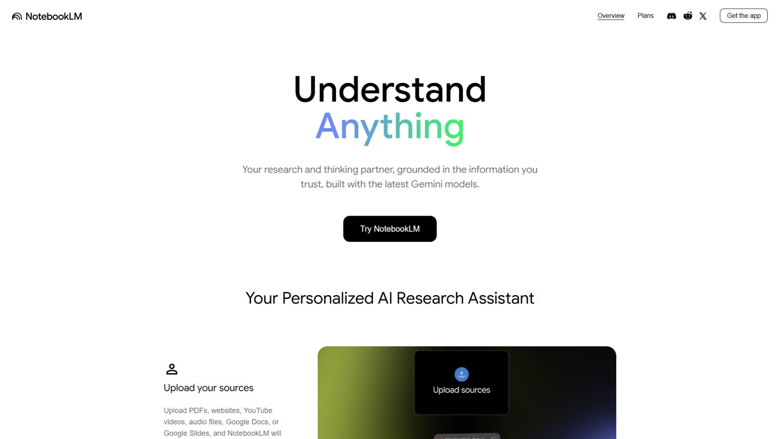 NotebookLM is an AI-powered note and text workspace built on Google AI. It helps you structure, analyze, and quickly find information across your uploaded materials and notes.